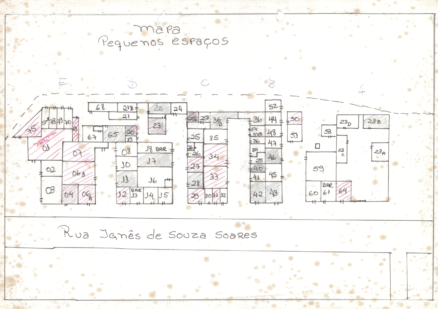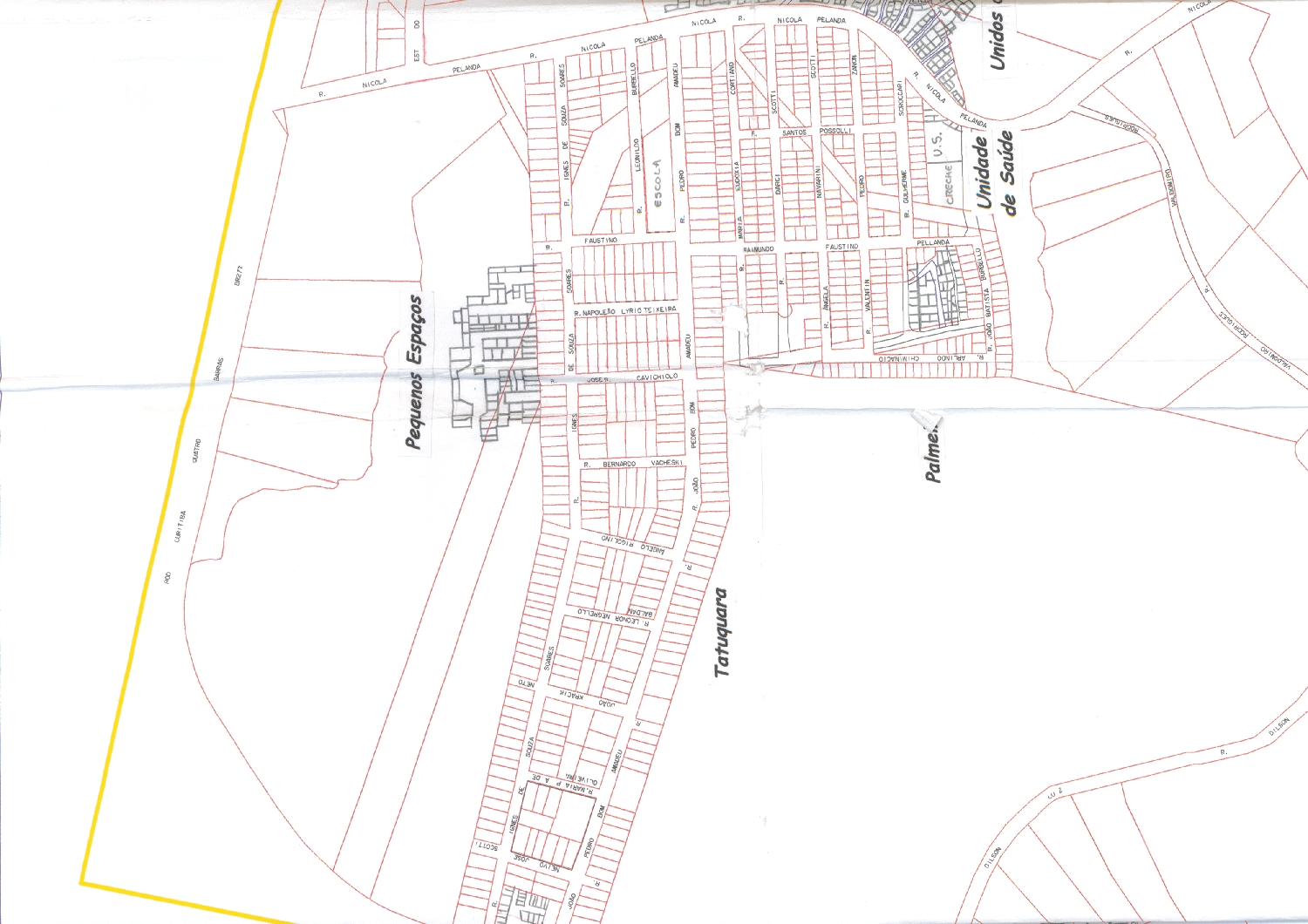 Mapa de enxertos urbanísticos - Recorte com indicação do Pequeno Espaço.