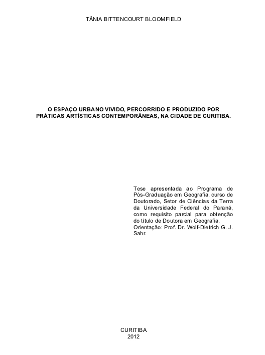 O espaço urbano vivido, percorrido e produzido por práticas artísticas contemporâneas, na cidade de Curitiba - Tânia Bittencourt Bloomfield - 2012