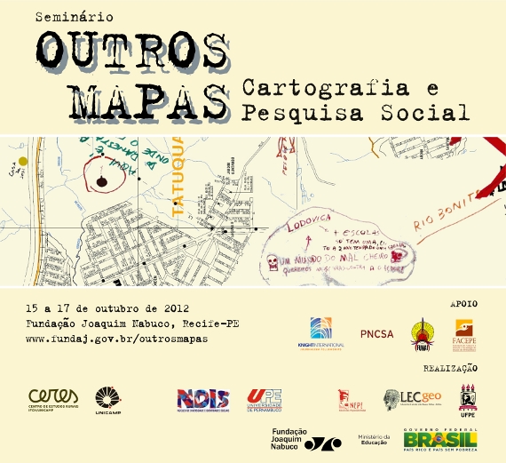 Cartaz do Seminário Outros mapas – FUNDAJ – Recife/PE – 2012 Fala: Claudia Washington e Lúcio Henrique de Araújo (Coletivo E/Ou) – Descartografias e recartografias – experiências do Coletivo E/Ou